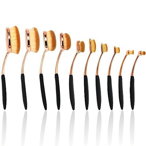 10pc oval toothbrush style brushes(Face Blush, Eyeline, Eyebrow, etc) provide easy and professional solutions for basic cosmetics foundation. Makes applying makeup a luxurious experience.
