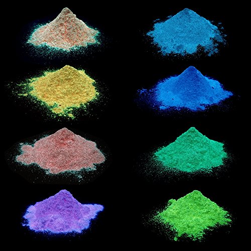 Glow In The Dark Pigment Powder Luminous powder,Safe Non-Toxic,8+ Colors Available,4.16 ounces (0.53oz/color)For All Colorless Medium,Ink,Paint,Plastic Resin,Glass. ETC