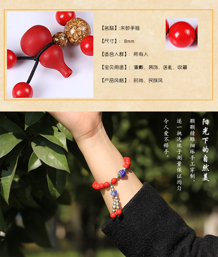 纯天然台湾朱砂8mm单圈佛珠手串 本命年男女款礼物 辟邪转运手链