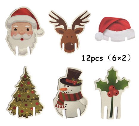 King&Pig 12pcs/set 6 types Christmas glass sign flag Christmas toothpick flag food sign Christmas cake sign flag Party Decorations (6 types×2 )