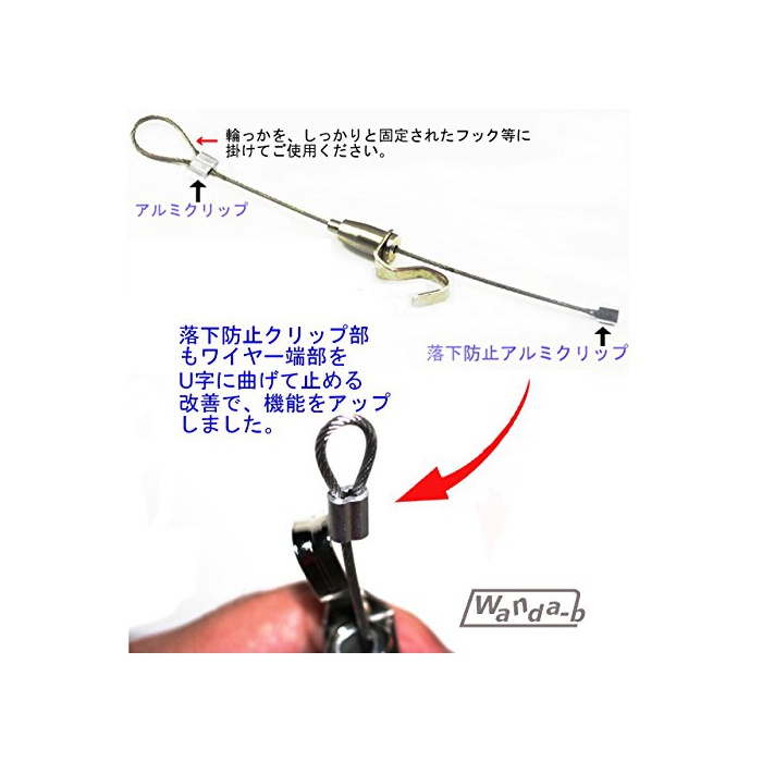 원본상품명:Wanda-b 額 ポスタ 展示用 ピクチャレル ワイヤ フック 1.5m 10本 セット