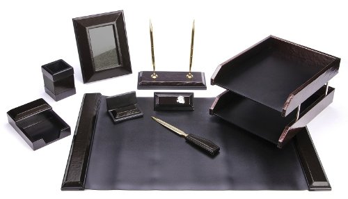 Majestic Goods Office Supply Synthetic Leather Desk Set, Black 9 Piece (W513)
