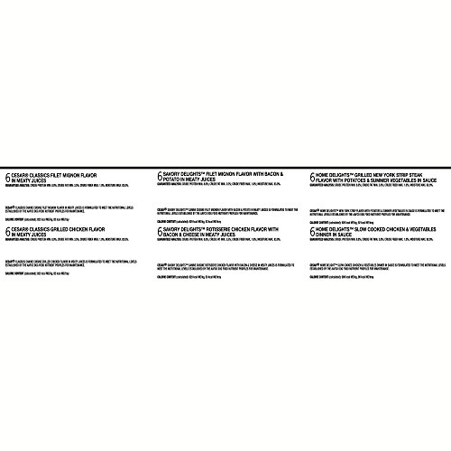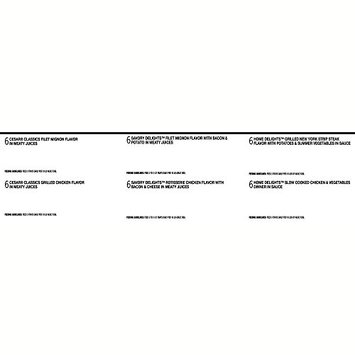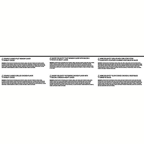 -. Feature : Contains thirty-six (36) 3.5-oz. trays of CESAR Canine Cuisine Classics Fillet Mignon, Grilled Chicken, Savory Delights Fillet Mignon, Rotisserie Chicken, Home Delights Grilled New York Strip, Slow Cooked Chicken Flavor Wet Dog Food / This gourmet wet food for dogs is served in convenient single-serve trays with easy, peel-away freshness seals / CESAR Canine Cuisine provides complete and balanced nutrition formulated just for adult dogs / This savory dog food is fortified with vitamins and minerals to help dogs of all sizes, especially small breeds, stay healthy