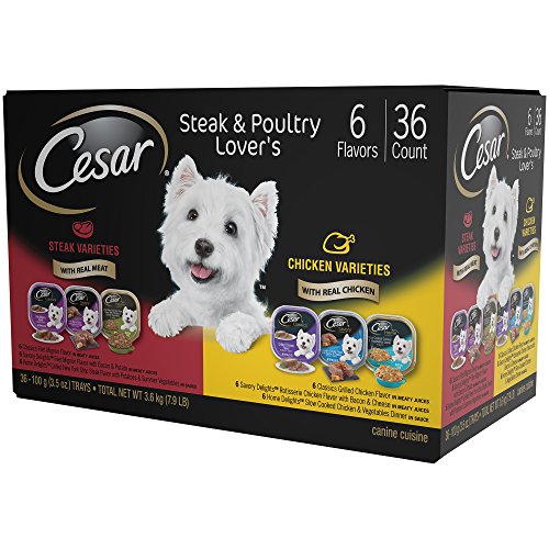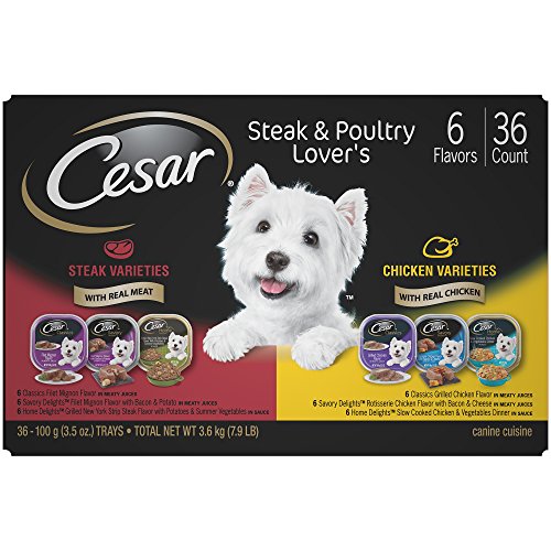 -. Title : CESAR Steak and Chicken Lover's Adult Wet Dog Food Variety Pack Trays 3.5 Ounces (Pack of 36)