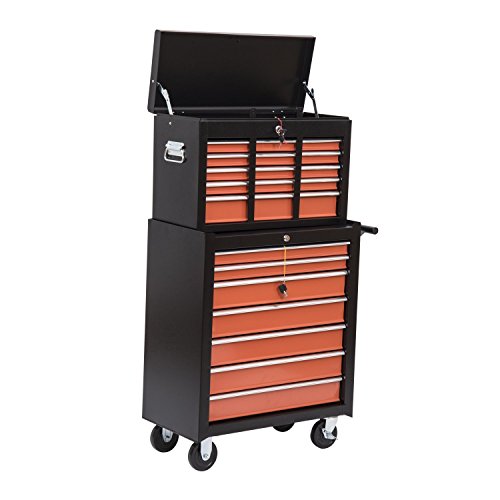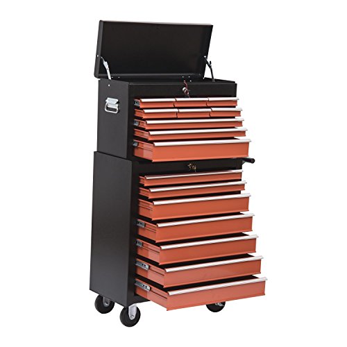 -. Binding : Tools & Home Improvement -. Brand : HOMCOM -. Feature : Comes with 16 ultra-smooth opening drawers for abundant storage space / 2 lockable omni-directional wheels and 2 directional wheels for smooth and easy movement / Side handle for added convenience / An EVA mat is placed in each drawer for sound and oil absorption / A lock with 2 sets of keys provides extra security when not in use -. Label : Aosom Direct -. Manufacturer : Aosom Direct -. Model : B20-002OG-Parent -. ProductGroup : Home Improvement -. ProductTypeName : SECURITY_ELECTRONICS -. Publisher : Aosom Direct -. Studio : Aosom Direct -. Title : HOMCOM Rolling Tool Chest Cabinet with 16 Drawers