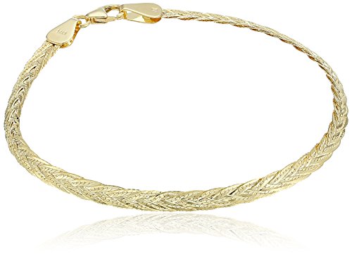 -. Title : 14k Gold Italian 5-Strand Diamond-Cut Braided Herringbone Bracelet