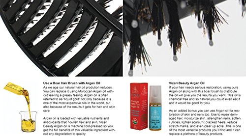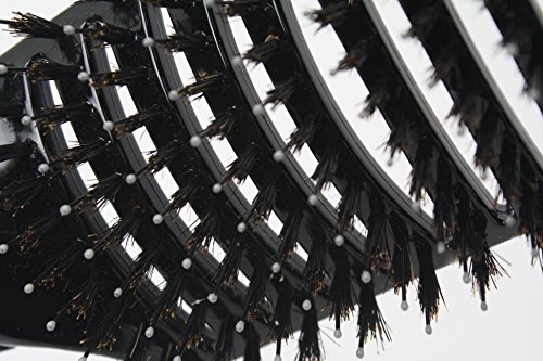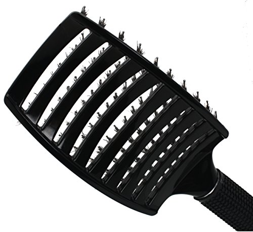 - Feature : BOAR BRISTLE BRUSH DISTRIBUTES HAIR OILS: These half-eight boar's hair and full-length nylon pins work for detangling, plus the bristles distribute hair oils from the roots out to the ends for shiny, healthier hair. If your hair is lacking in natural oils, use to distribute Argan oil applied to your hair. Boar bristles have been used since the 1800s to naturally achieve lustrous shine without chemicals. Movie stars of the past like Bacall, Hayworth, and Hepburn used boar bristle brushes. / SPECIAL CURVED DESIGN: Ever notice your head isn't square or flat? So why are most hair brushes flat? Not only does this detangling brush fit the curve of your scalp, the curve and specially designed vent pattern work together to channel airflow to your hair which results in up to 20% faster drying time. The light weight curved design also enables the nylon pins to give your head a scalp massage to stimulate blood flow and hair growth while giving you a relaxing and meditative experience. / USE ON ALL HAIR TYPES: No matter what your hair type this brush can be used. Use on curly hair to relax the curls. Use on long, straight hair to add volume.The brush even works great on thick, natural African hair. / FEWER WASHES REQUIRED: Brush strokes add shine and reduces the number of washes you need by preventing oil buildup at the scalp so your hair doesn't look weighed down and greasy. Unlike regular boar brushes you can use this one on wet or dry hair without ripping hair out or breaking it. Works great with Brazilian hair straightening systems. If you want a brush that gives salon performance and is better than a standard paddle brush this is it. / Order now and while you are at it, get another for a friend or family member you love. This brush is perfect for men, women & kids. Special pricing available for multiple purchases.