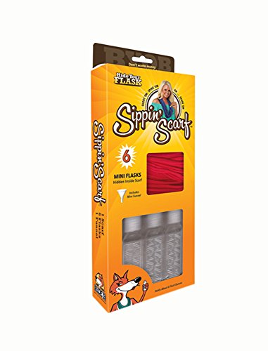 Binding : Apparel Product Description Its a scarf its a fashion statement its a secret flask This one-of-a-kind scarf holds 6 durable screw top plastic mini flasks inside 6 secret pockets. You can shoot em spike em or share em with your friends. Wear your Sippin Scarf anywhere - concerts sports games cruises fairs and even airplanes The hidden flasks are under the liquid limit so just place your Sippin Scarf in the TSA x-ray bin when going through security. You can enjoy your own mini bar for FREE right there at your seat while your neighbors have to pay through the nose.Features. Made of 100 Rayon.. Machine washable in a net bag or hand wash.. Includes Mini Funnel.. Color - White.. Item Weight - 6.75 oz.Wear it 3 ways. Under our scarf.. Under loose clothing.. Under any scarf in your closet. 0