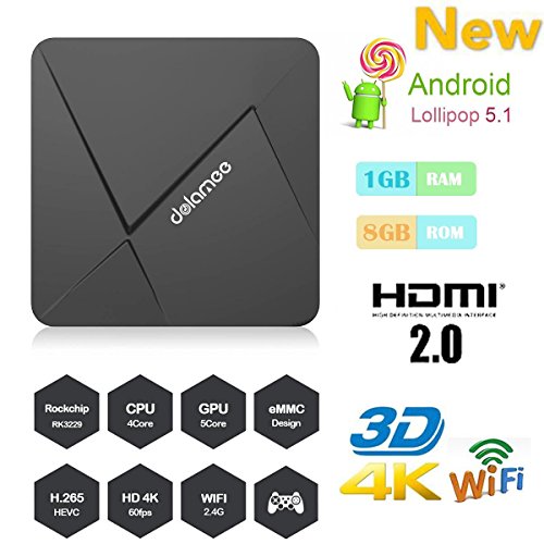 -. Feature : HONGYU LATEST DOLAMEE ANDROID OS - The giving you the Android 5.1 experience .Super Mini and Smart D5 is a Super-Mini Android TV Box, It has very small and thin size.If you do not have a lot of space this box will surely work for you. / Top Hardware Settings - DOLAMEE D5 comes with 2017's new chipset: Rockchip RK3229 Quad-core Cortex A7 1.5GHz 32bit, which is perfect for 4K video solution with its Penta-Core HD Graphics GPU. Also, its 1GB DDR3, 8GB eMMC Flash and Wifi 802.11 b/g/n make home entertainment become easy. / Practical Multi-media Player- D5 is a practical home streaming media player,turn your tv into smart TV, feel free to enjoy all your favorite movies, food shows and entertainment programs. / Supporting a variety of video and applications.Tons of SNS applications which can be downloaded from Google play store and browser,Users can browse all video websites. / This box has 2 usb ports, a sd card slot, 3.5mm headphone jack, Ethernet port, ac adapter port, av port and a hdmi port . All of these ports where very functional and working.