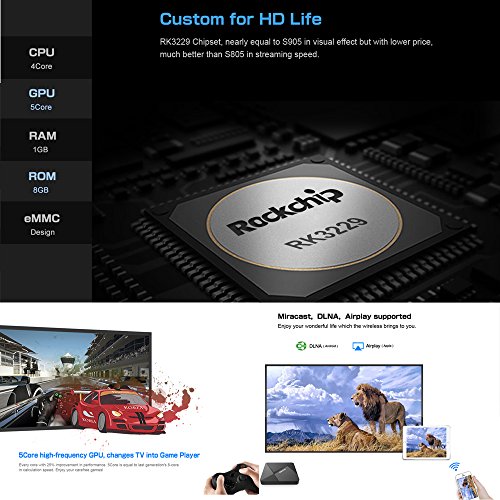 -. Title : HONGYU [New Series] D5 Android TV Box 1GB /8GB Rockchip RK3229 Quad Core 32bit Android 5.1 with 2.4G Wifi 100M LAN 4K HD H.265 HDMI OTT TV Player