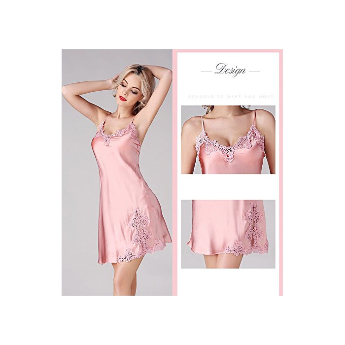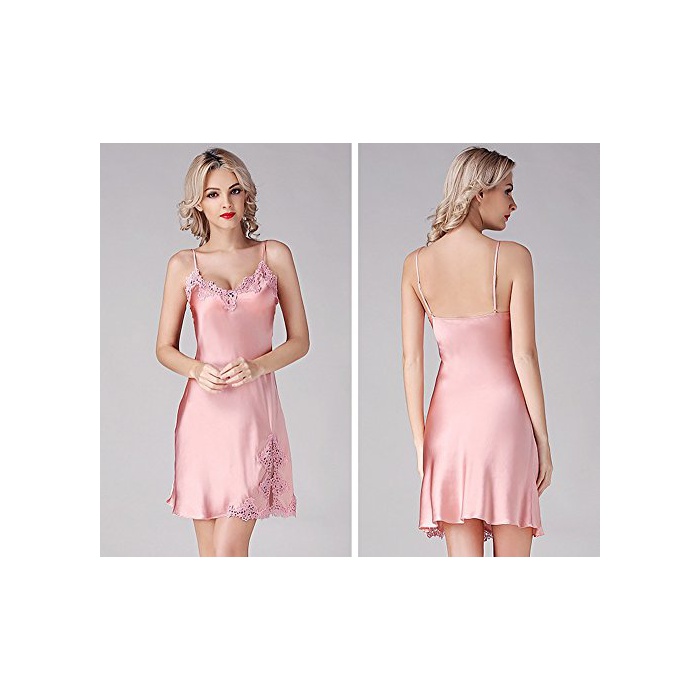 실크100% 가슴 팍과 옷자락의 소매치기《도》부분을 장식하는 우아한 자수 레이스 V넥 슬립 네글리제(neglige)