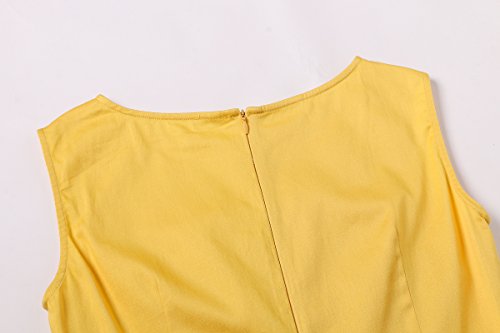 VOGVOG Women's Audrey Hepburn Sleeveless Plus Size Vintage Tea Dress with Belt,Yellow,Small