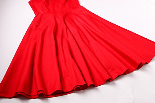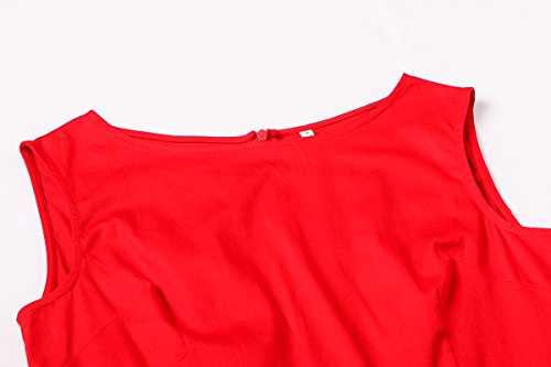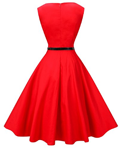 VOGVOG Women's Audrey Hepburn Sleeveless Plus Size Vintage Tea Dress with Belt,Red,Medium