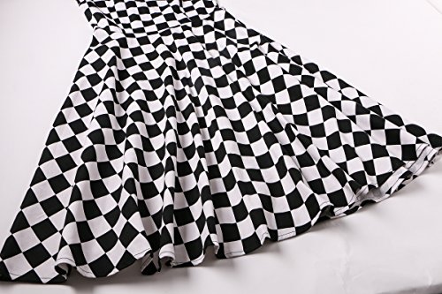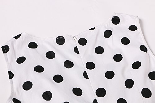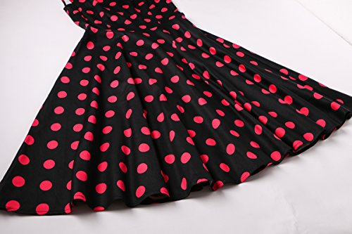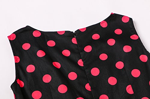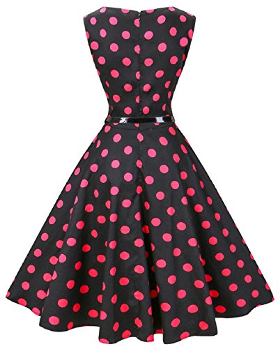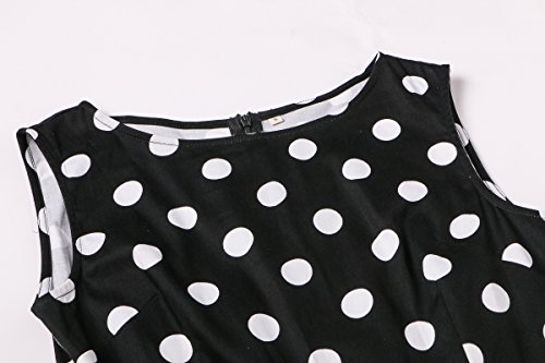 VOGVOG Women's Audrey Hepburn Sleeveless Plus Size Vintage Tea Dress with Belt,Small Dot Black,Large