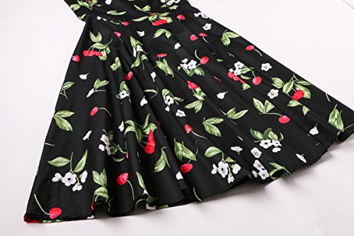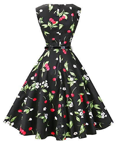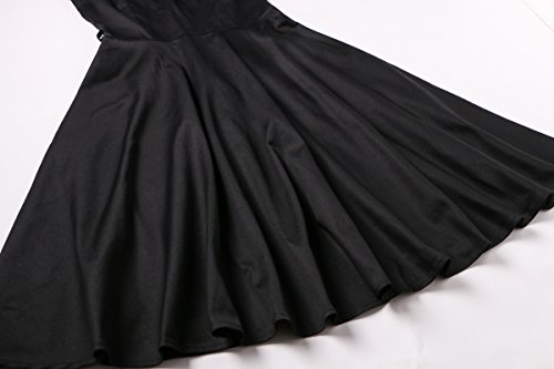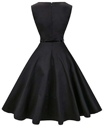 VOGVOG Women's Audrey Hepburn Sleeveless Plus Size Vintage Tea Dress with Belt,Black,Small