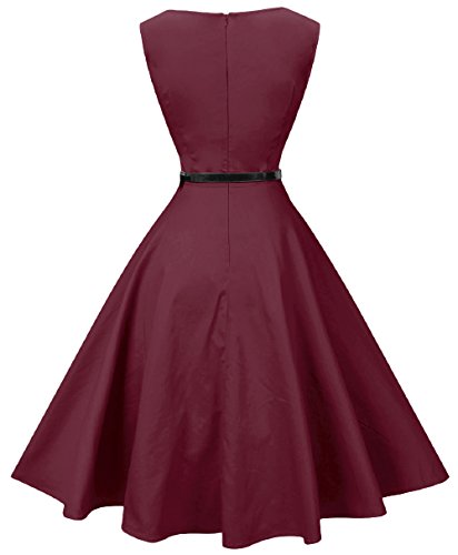 VOGVOG Women Boatneck Sleeveless Vintage Tea Cocktail Dress with Belt size S-4XL