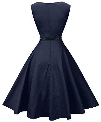VOGVOG Women's Audrey Hepburn Sleeveless Plus Size Vintage Tea Dress with Belt,Royal Blue,Small