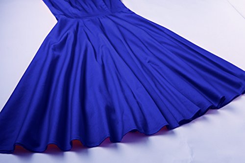 VOGVOG Women's Audrey Hepburn Sleeveless Plus Size Vintage Tea Dress with Belt,Royal Blue,Medium