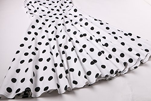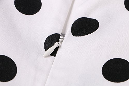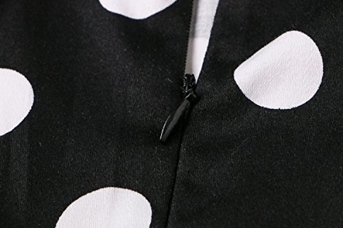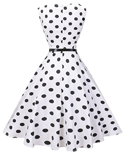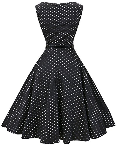 VOGVOG Women Boatneck Sleeveless Vintage Tea Cocktail Dress with Belt, Small Dot Black, X-Large