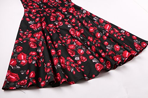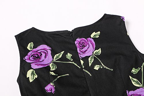 VOGVOG Women's Audrey Hepburn Sleeveless Plus Size Vintage Tea Dress with Belt,Floral,Large
