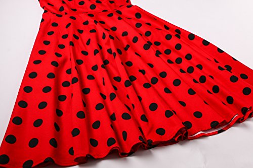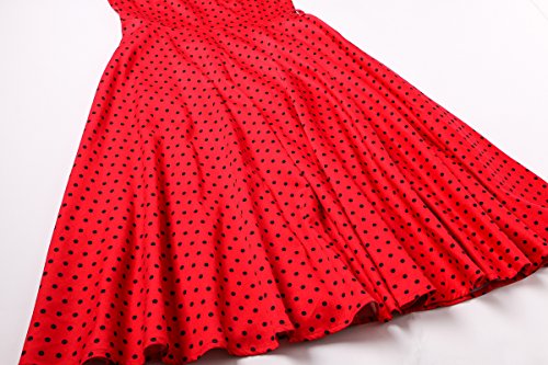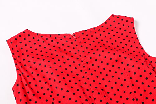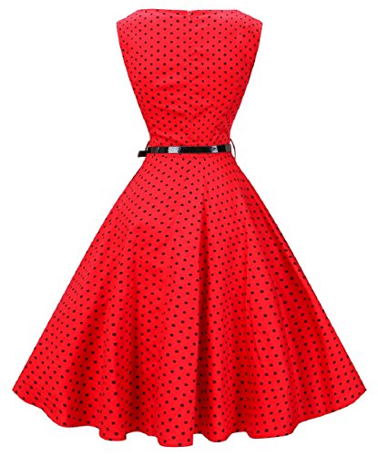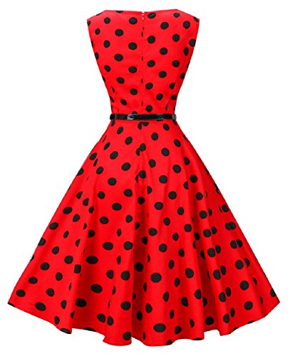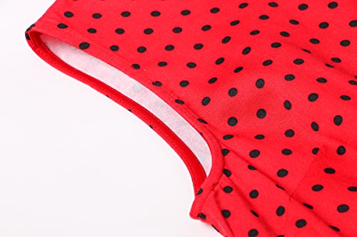 VOGVOG Women's Audrey Hepburn Sleeveless Plus Size Vintage Tea Dress with Belt,Small Dot Red,X-Large
