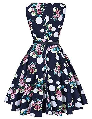 VOGVOG Women's Audrey Hepburn Sleeveless Plus Size Vintage Tea Dress with Belt,Blue Floral,Small