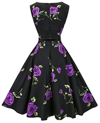 VOGVOG Women's Audrey Hepburn Sleeveless Plus Size Vintage Tea Dress with Belt,Rose Purple,Large