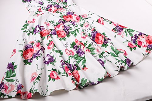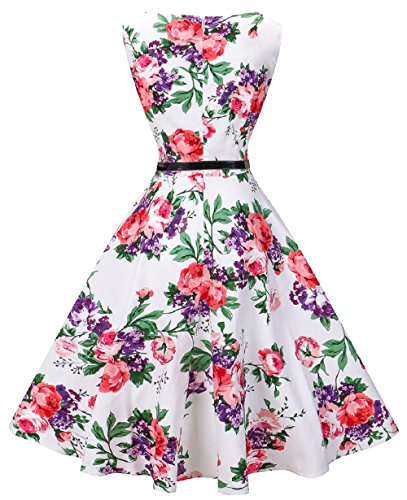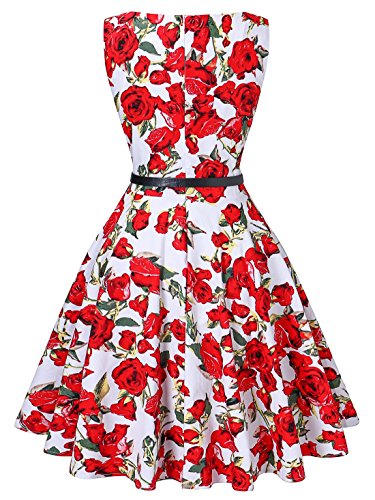 VOGVOG Women Boatneck Sleeveless Vintage Tea Cocktail Dress with Belt, Floral, Medium
