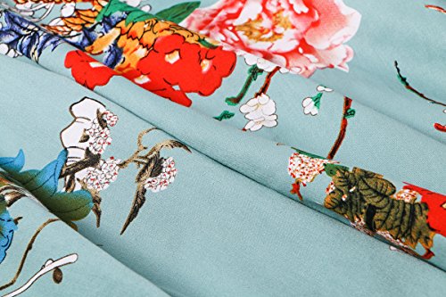 VOGVOG Women's Audrey Hepburn Sleeveless Plus Size Vintage Tea Dress with Belt,Floral Light Green,Medium