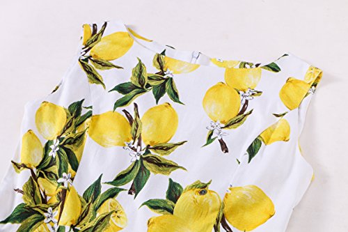 VOGVOG Women Boatneck Sleeveless Vintage Tea Cocktail Dress with Belt, Lemon, X-Large