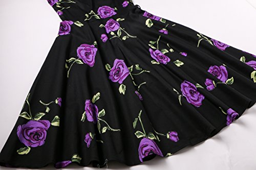 VOGVOG Women's Audrey Hepburn Sleeveless Plus Size Vintage Tea Dress with Belt Rose Purple X-Large