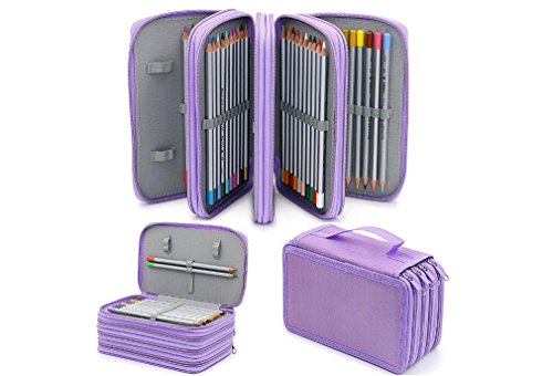 Icegirl Super Large 72 Slots Pencil Case 4 Layers Handy Wearable Oxford Pencil Bag Portable Large Capacity Drawing Sketching Pencil Organizer Student Gift Art Supplies (Purple)