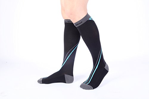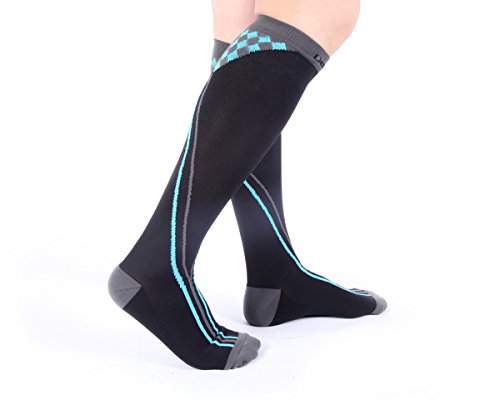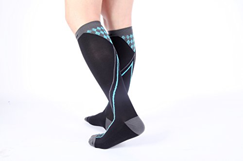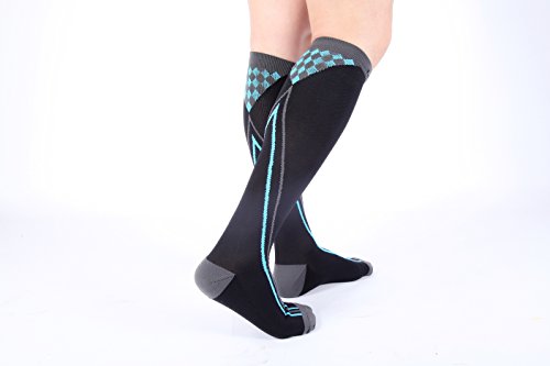 - HEALTH and RELIEF IN STYLE – The sock act as excellent compression hose, without the boring single color treatment meted out by tired sock companies. Your varicose and spider veins dont mean you are consigned to boring designs. The socks are made from hi-grade Lycra (or Spandex) and are built to last. Use them to combat Edema, Deep Vein Thrombosis (DVT), during pregnancy, air travel, for nurses, for muscle recovery after strenuous activity, reducing fatigue and swelling in your lower legs.