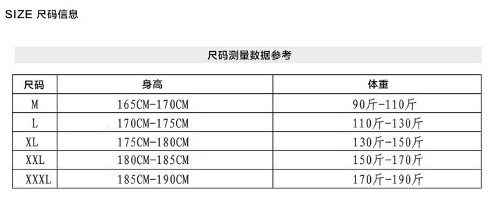 Size M, L, XL, XXL, XXXL