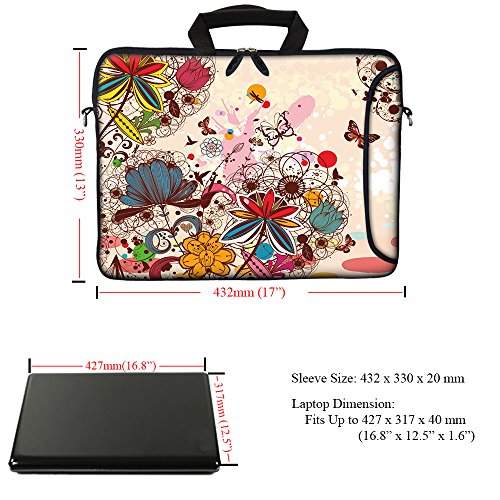-. Binding : Personal Computers -. Brand : Meffort Inc -. Feature : Hydrophobic (water resistance) neoprene material, w. reinforced dual zipper to secure your device / Soft Strong carrying handle & removable adjustable shoulder strap / High quality P.R.Inting on both side of the bag with extra side pocket for accessories / Soft inner lining will not scratch screen; firm fitting design with laptop edge guard / Fits laptop size up to 17.3 inch, Fits laptop dimension up to: 16.8" (427mm) x 12.5" (317mm) -. Label : Meffort Inc -. Manufacturer : Meffort Inc -. MPN : 17TB_1 -. PartNumber : 17TB_1 -. ProductGroup : PC Accessory -. ProductTypeName : CARRYING_CASE_OR_BAG -. Publisher : Meffort Inc -. Studio : Meffort Inc -. Title : Meffort Inc 17 17.3 inch Neoprene Laptop Bag Sleeve with Extra Side Pocket, Soft Carrying Handle & Removable Shoulder Strap for 16" to 17.3" Size Notebook Computer