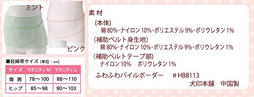 Binding : Apparel Product Description Product No.:HB-8113 Brand:Inujirushi Honpo Popularity:Maternity Pregnancy Belt Type:Belly band Support belt set Season:Year-round Origin:China Auxiliary belt presence or absence:Presence Color:Pink Mint Pattern: Material:-Body fabric?Belt body fabriccCotton80%,Nylon10%,Polyester9%,Polyurethan1% -Belt tapecNylon85%,Polyurethan15% Barcode:Pinkc4905179783074,4905179783067,Mintc4905179852350,4905179852343 Product information: -Adjustable to suit the waist circumference -Comfortable to wear and kidnapping -Fashionable Striped -Tightness is adjustable -Size adjustable -Fasten with Velcro -Low back pain measures -Stylish Striped