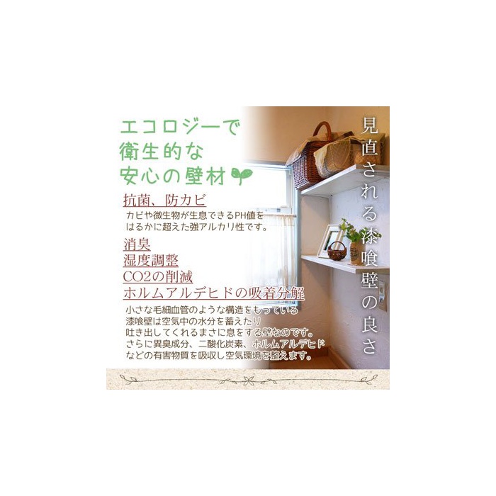 회반죽은,항균성,방곰팡이성,방화성,소취,《호루무아루데히도》의 흡착 분해,흡방출성이 있는 천연 소재입니다