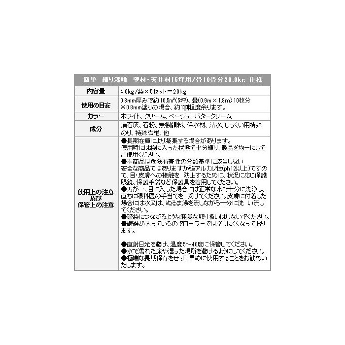 원본상품명: ◎簡? 練り漆? 壁材天井材[5坪用/?10枚分] 20kg ホワイト (A436-SET-S1)