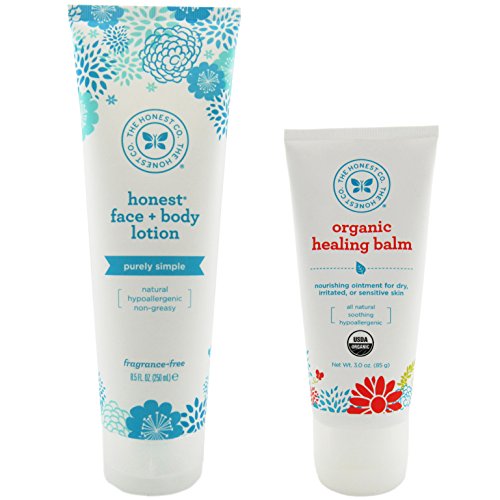 -. Binding : Health and Beauty -. Brand : The Honest Company -. EAN : 0731642841828 -. Feature : Combination Pack / Hypoallergenic / Biodegradable / Non-toxic / vegan -. IsAdultProduct : 0 -. Label : The Honest Company -. Manufacturer : The Honest Company -. PackageQuantity : 2 -. ProductGroup : Health and Beauty -. ProductTypeName : HEALTH_PERSONAL_CARE -. Publisher : The Honest Company -. Studio : The Honest Company -. Title : The Honest Company Face + Body Lotion 8.5 oz. & Organic Healing Balm 3.0 oz. -. UPC : 731642841828