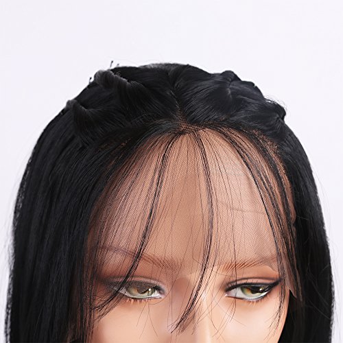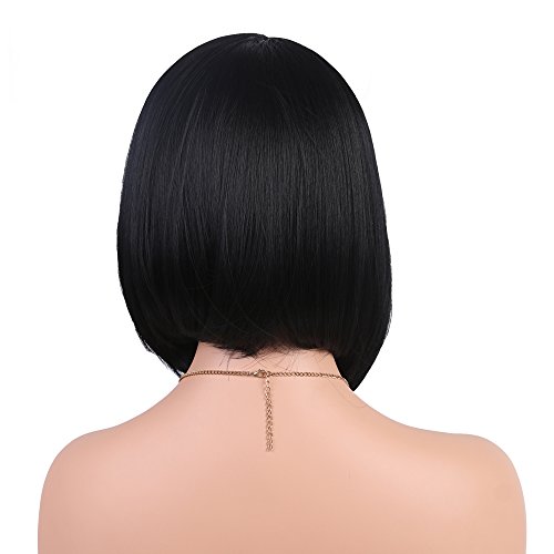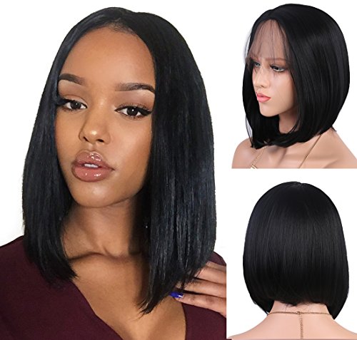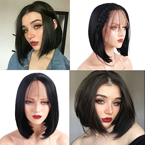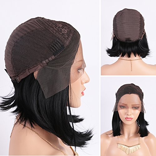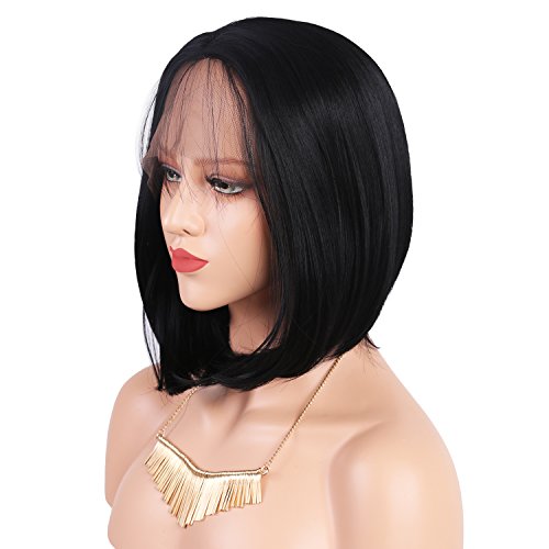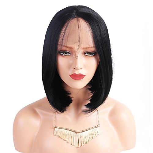 Andria Hair Bob Lace Front Wigs for Black Women Long Bob Synthetic Lace Wig Layered Straight Wig Heat Resistant Short Hair Wig (14 Inch # 1 B Color)