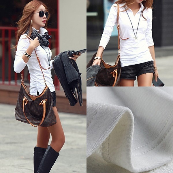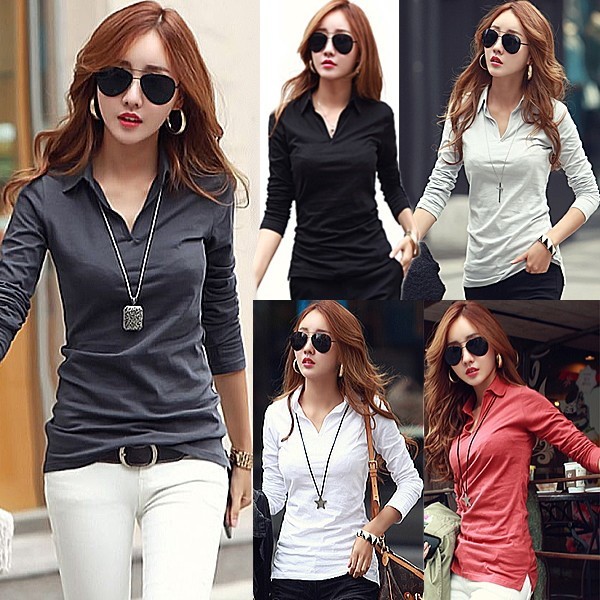 | 商品名 | 長袖 Vネック 襟付き ポロシャツ風スリムTシャツ カットソー |