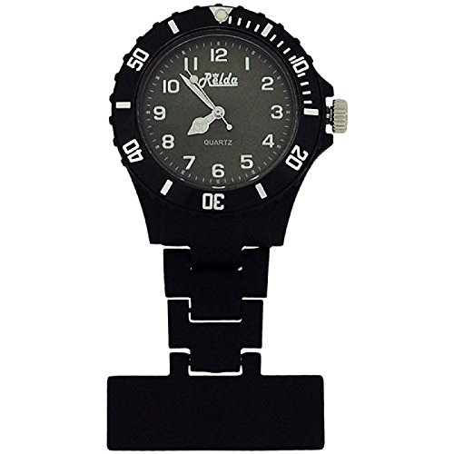 -. Title : Relda Unisex Black Rotating Bezel Rubberised Nurses Fob Watch Rel20