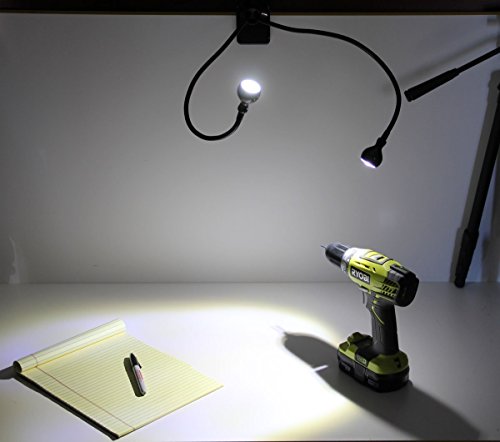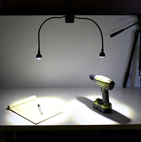 - With 2 fully adjustable gooseneck arms allow easy positioning of the 2 light heads .On/Off toggle switch on cord, twelve inches from base
