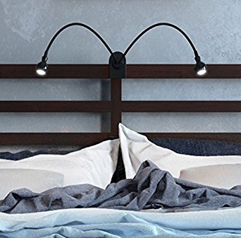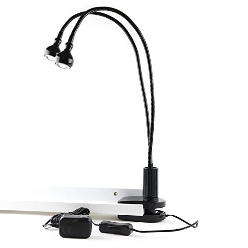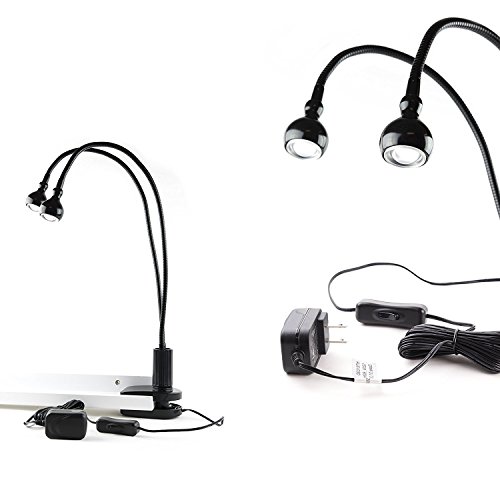 Modern Clamp Design Dual Adjustable Gooseneck Arms Spotlight with Energy Efficient Led Light , Adapter Electrical Cord with On/off Switch , Black , Office Table , Music Stands, Work Space, Headboards