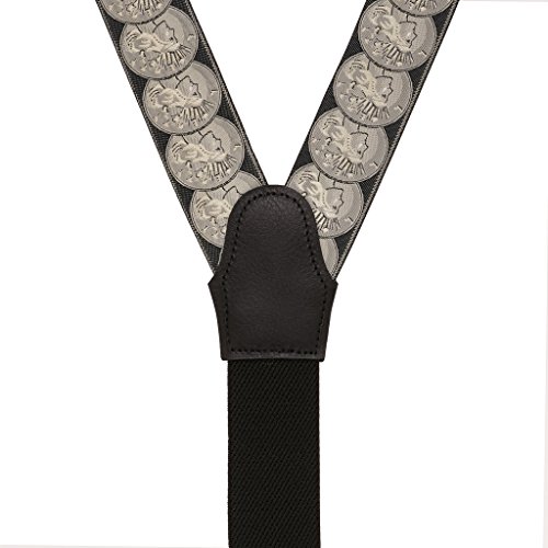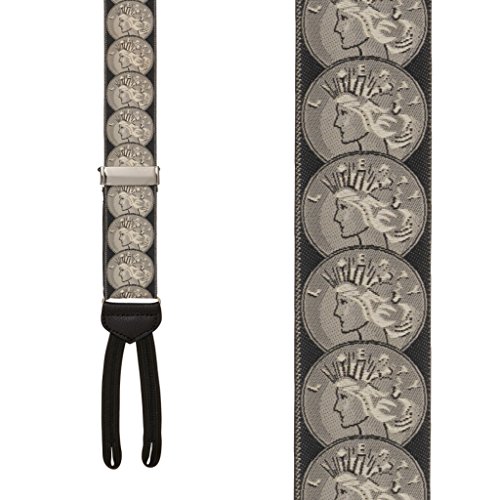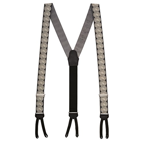 Binding : Apparel Product Description Made of authentic vintage ribbon, our conversational suspenders are detailed with beautiful patterns and colors. The non-stretch ribbon straps are 1.25-inches wide and constructed with an elastic Y-back with genuine leather crosspatch. Woven runner end button attachments and polished nickel size adjusters complete the look. Available in a 46-inch length, these suspenders will fit those of average build between 5'2"-6'1" tall. 0