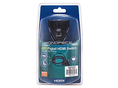 Do you not have enough HDMI inputs on your TV to handle all your new HD devices? You don't need a new TV and you don't need an expensive or bulky box. Just get this simple HDMI 2x1 Pigtail Switch adapter instead! Plug this switch into your TV's input. Then plug the cable from each of your HD devices into the switch. That's it! No special setup required, no power needed, no remotes to program. Just plug it in and start playing. The switch has two inputs and supports full 1080p resolution with HDCP pass-through. It can handle up to 12-bits per channel (36-bit total) Deep Color and digital audio, including DTS Digital, DTS-HD Master Audio, and Dolby TrueHD. It has a 20" cable and gold-plated HDMI connectors for smooth, corrosion-free connections. The switch will automatically switch between inputs, depending on which one is on at the time. If both source devices are on, just press the small button on the switch to change the input.Feature