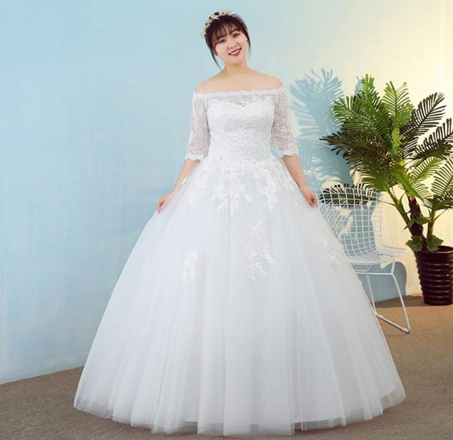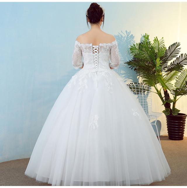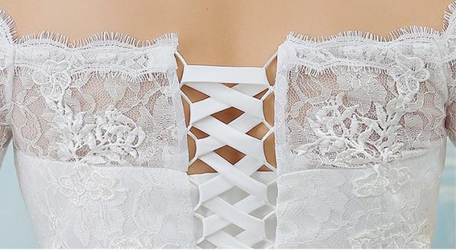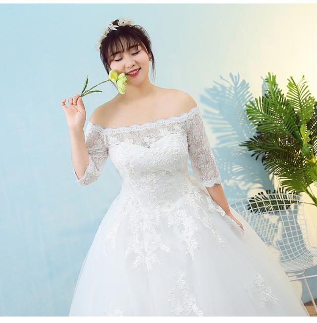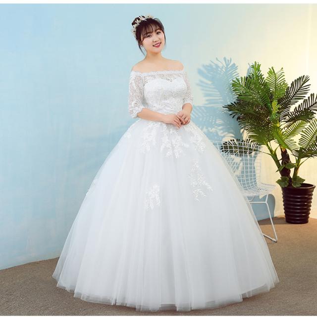 オフショルダー ウエディングドレス ウエディング レース 刺繍 結婚式 披露宴 パーティー スピンドル 調節可能 着痩せ効果 足長効果 春 夏 秋 冬 韓国風 XL 2XL 3XL 4XL 5XL キャバ 親族 レースアップ