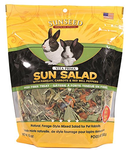 -. Binding : Misc. -. Brand : SUNSEED COMPANY -. EAN : 0087535360656 -. Feature : Natural forage-style mixed salad for pet rabbits with parsley carrots and red bell peppers / This natural high fiber treat encourages active feeding behavior / Great way to treat your pet while supporting overall health and well being -. Label : P.R.Ime Pet Deals - Code 1 -. Manufacturer : P.R.Ime Pet Deals - Code 1 -. Model : 36065 -. MPN : 36065 -. NumberOfItems : 1 -. PackageQuantity : 1 -. PartNumber : 36065 -. ProductGroup : Pet Products -. ProductTypeName : PET_SUPPLIES -. Publisher : P.R.Ime Pet Deals - Code 1 -. Size : 10 oz -. Studio : P.R.Ime Pet Deals - Code 1 -. Title : SUNSEED COMPANY 36065 Vita P.R.Ima Sun Salad for Rabbits, 10 oz -. UPC : 087535360656