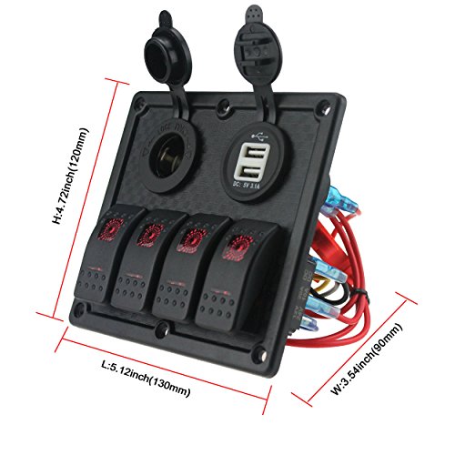 Panel size: about 13 x 12 x 9cm(5.12"x4.72"x3.54"),it is a pre-wired panel,each switch has an empty post for your positive wire of whatever accessory you choose for that switch. can be vertically mounted and horizontally mounted