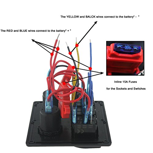 Loop Circuit:ON-OFF,Electrical Life:10000 make and break cycles at full load;15A fuse for the USB and 2 rocker switches and 15A for the power socket and the other 2 rocker switches